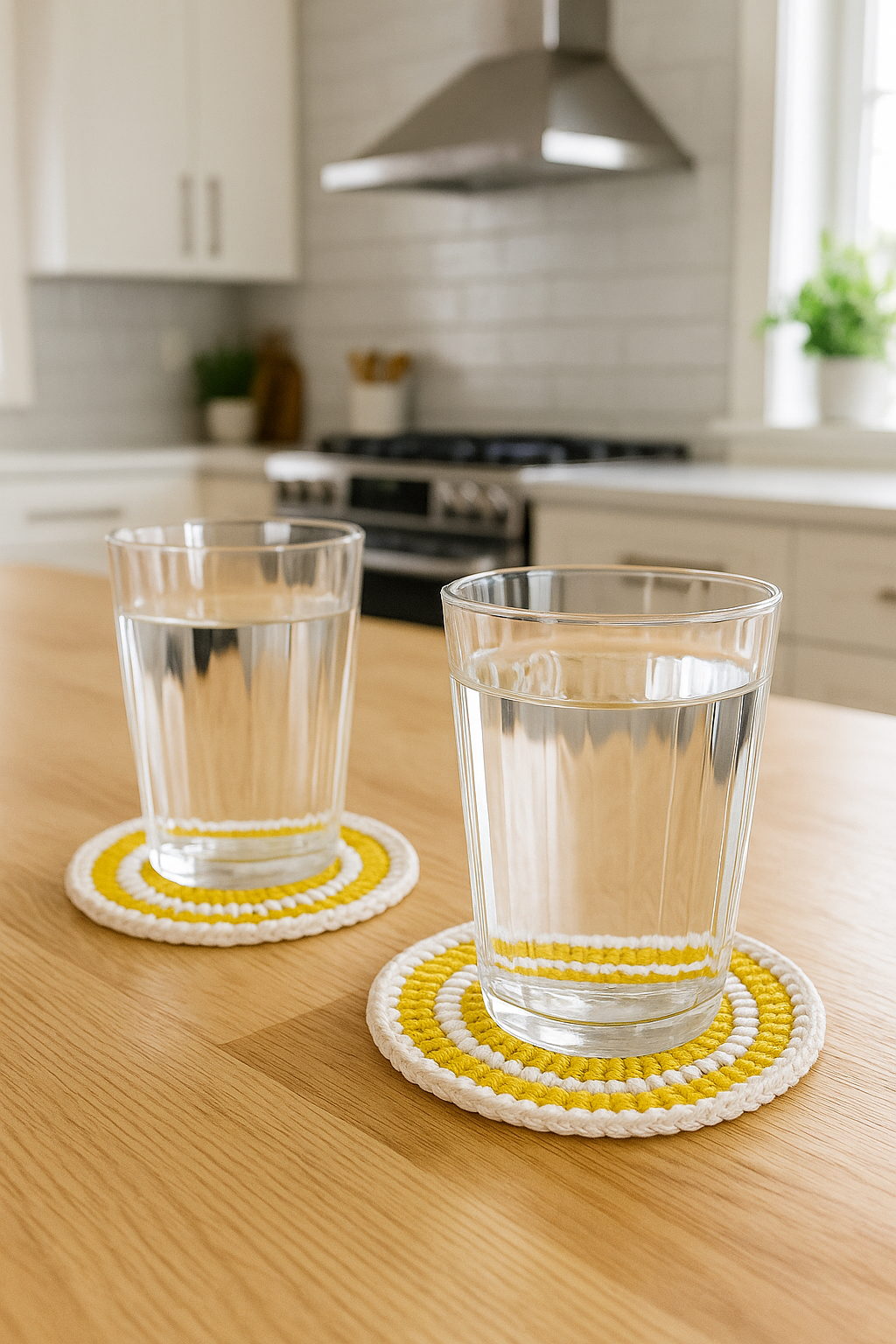 Cozy Wool Thread Crochet Glass Mats, Set of 6