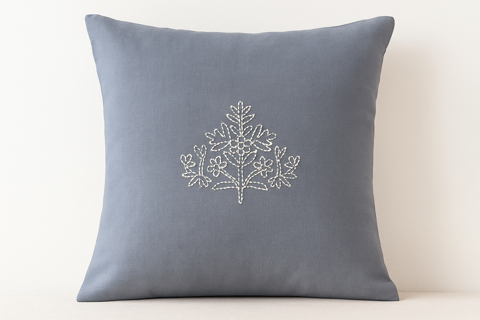 Enhance your living space with this exquisite set of two 16x16 cushions featuring meticulous running stitch handwork crafted with durable cotton thread. Each cushion showcases expert craftsmanship, adding subtle texture and artisanal charm to your décor while ensuring lasting quality and comfort. Ideal for those who appreciate refined, handcrafted details in home accessories.